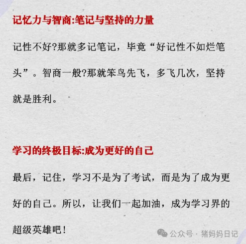 记性差?那就多做笔记!毕竟,“好记性不如烂笔头”。写下来的东西,不仅帮助记忆,也让大脑在整理和复习的过程中更加深刻地理解和吸收。每一笔记录,都是知识在大脑中加深印象的过程,让你在关键时刻能迅速回忆起重要信息。